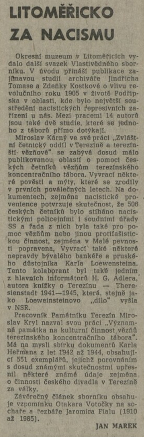 15) Miroslav KÁRNÝ, Zvláštní četnický oddíl v Terezíně a četnický vězňové, in: Litoměřicko: vlastivědný sborník XXI. - XXII., Litoměřice 1986, str. 41-50.