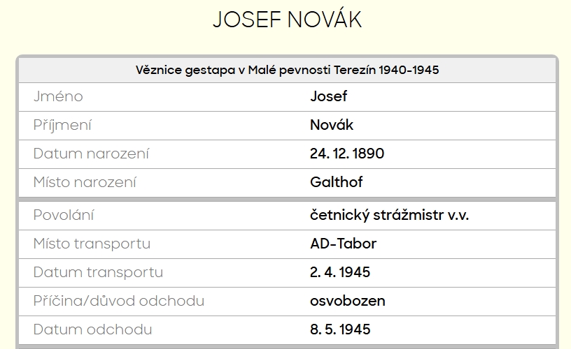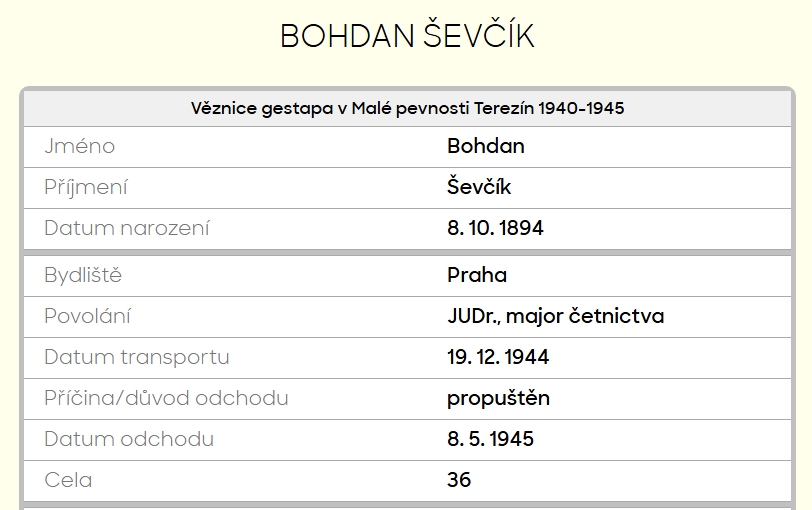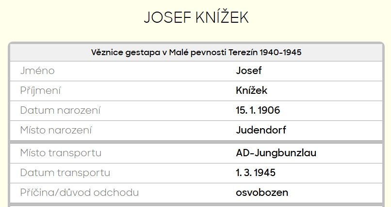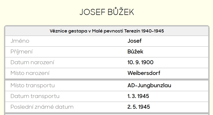 Věznice gestapa v Malé Pevnosti Terezín 1940-1945, databáze českých vězňů v koncentračním táboře Buchenwald 1937-1945.