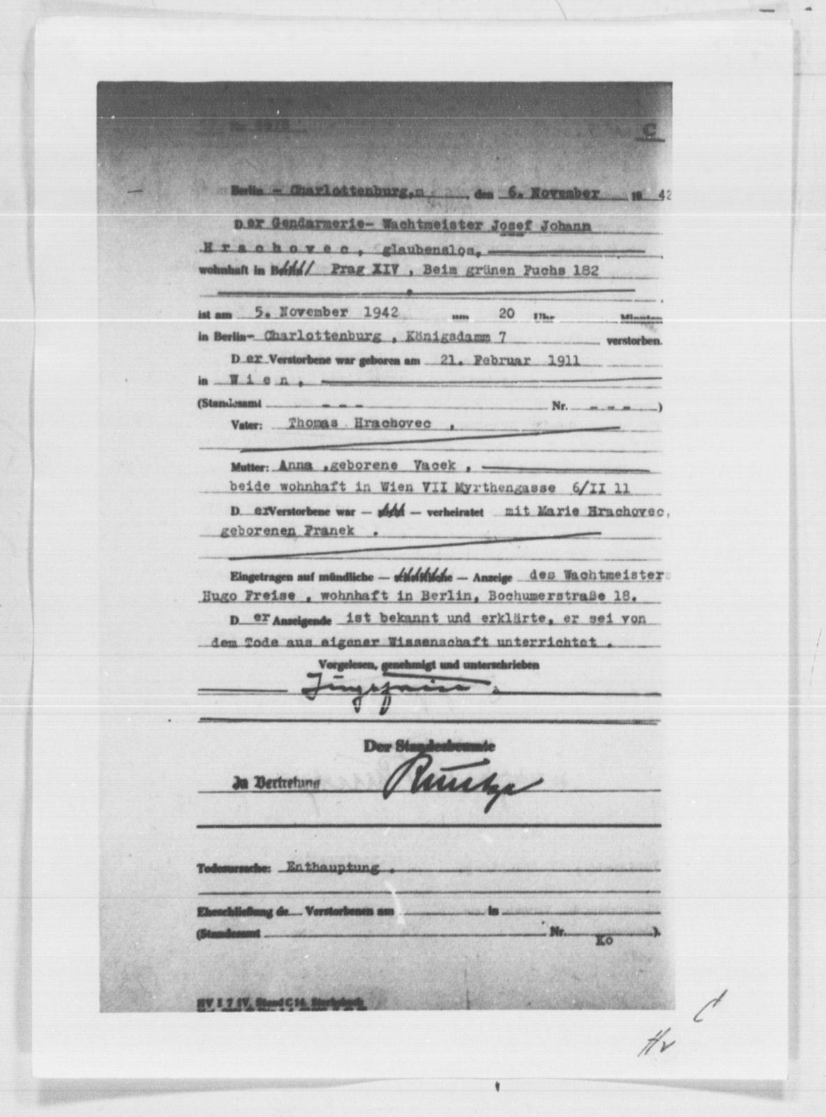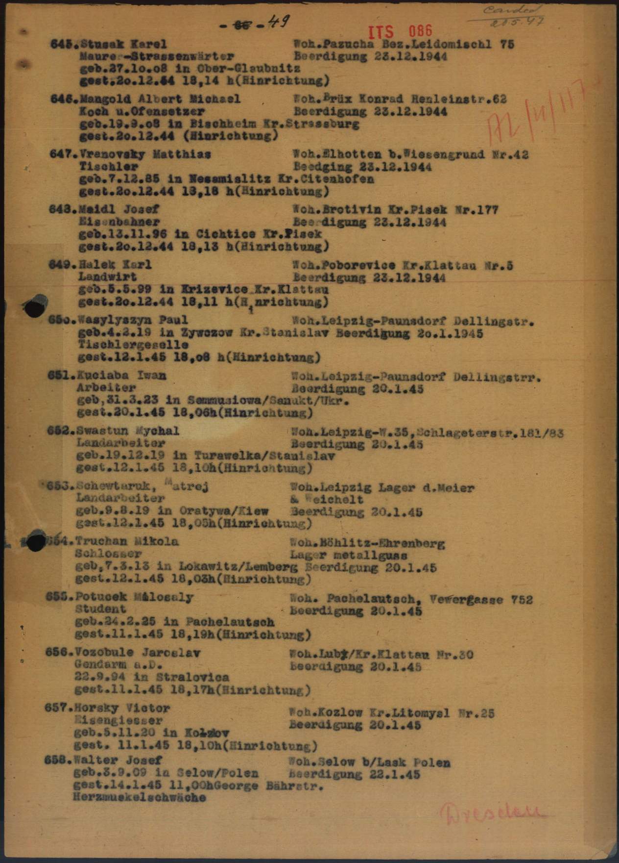 Datum úmrtí: 11.1.1945 příčina úmrtí: popraven místo úmrtí: Drážďany