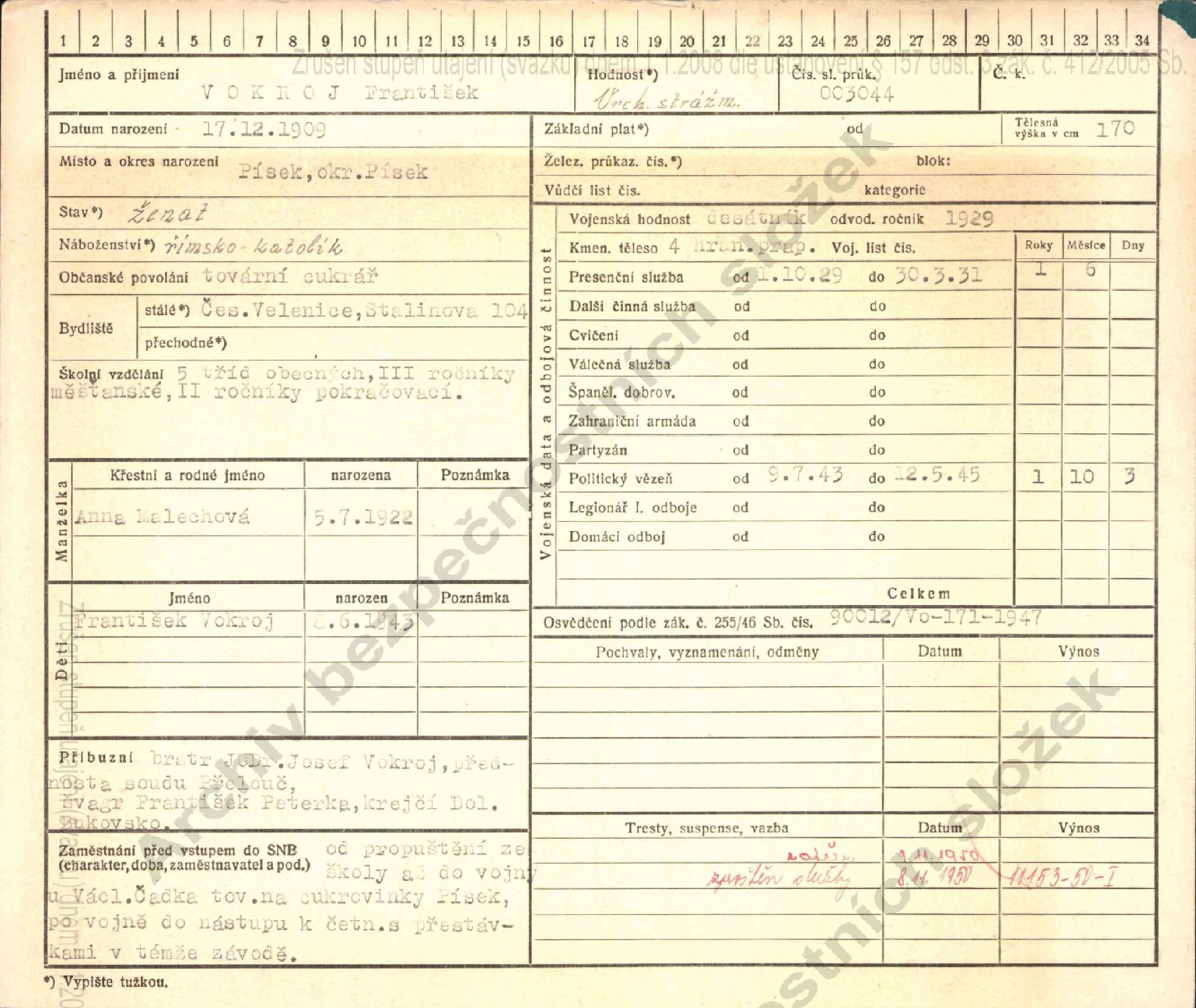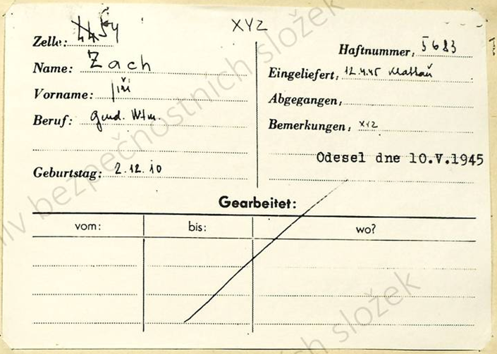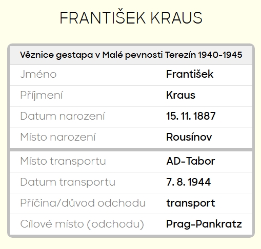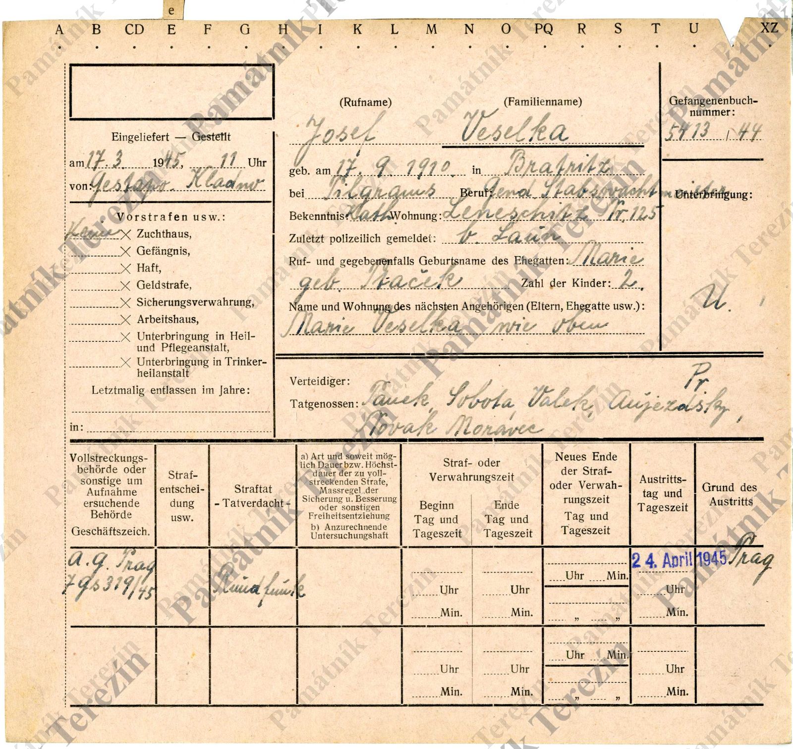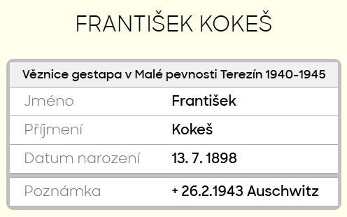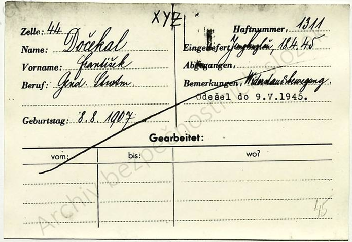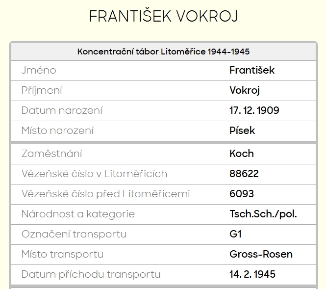 Außenlager Leitmeritz – Häftling František Vokroj (17.12.1909 Písek) - Terezín Memorial (APT) - Memorial Archives