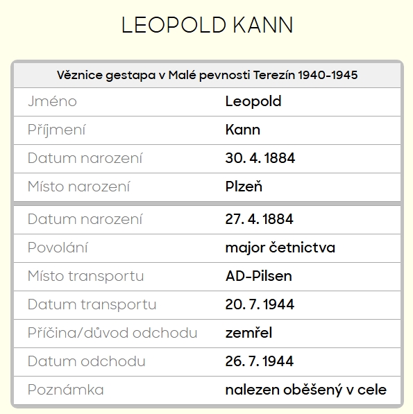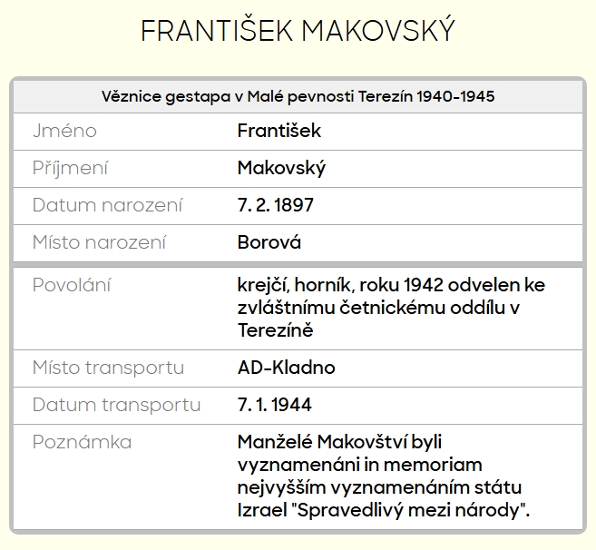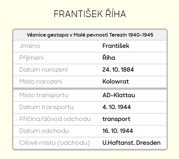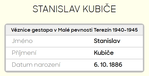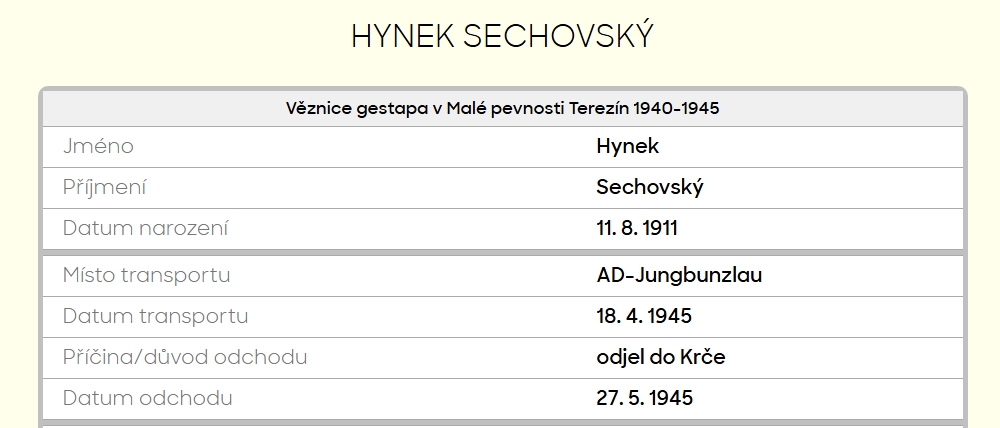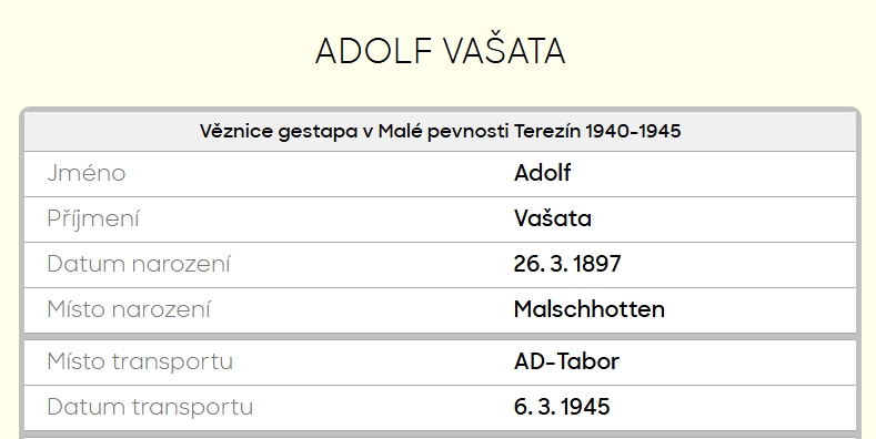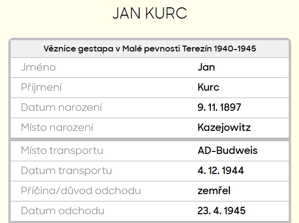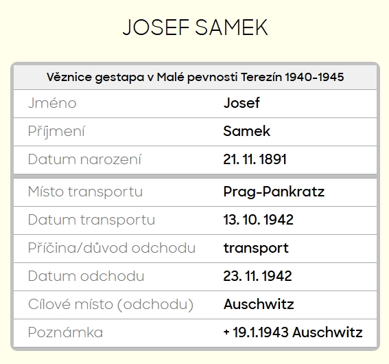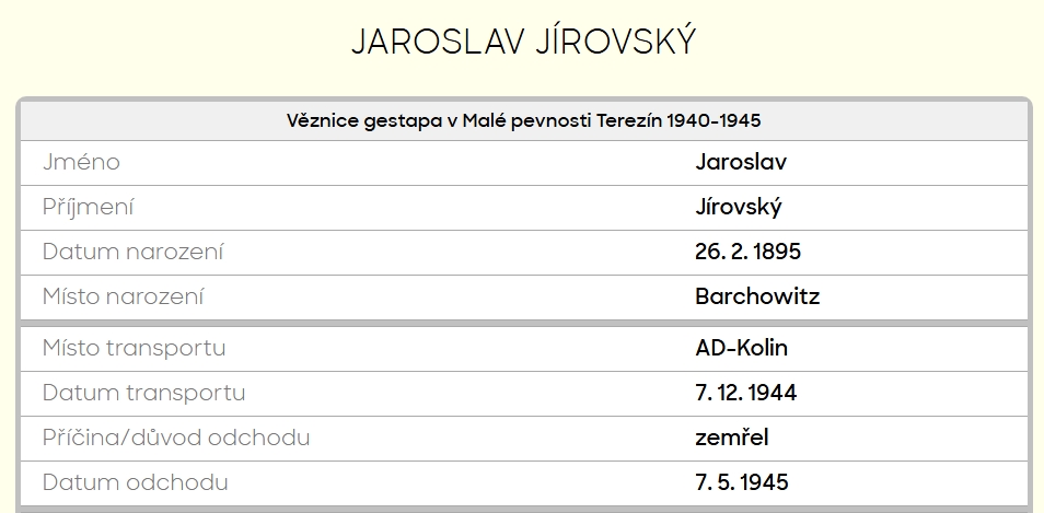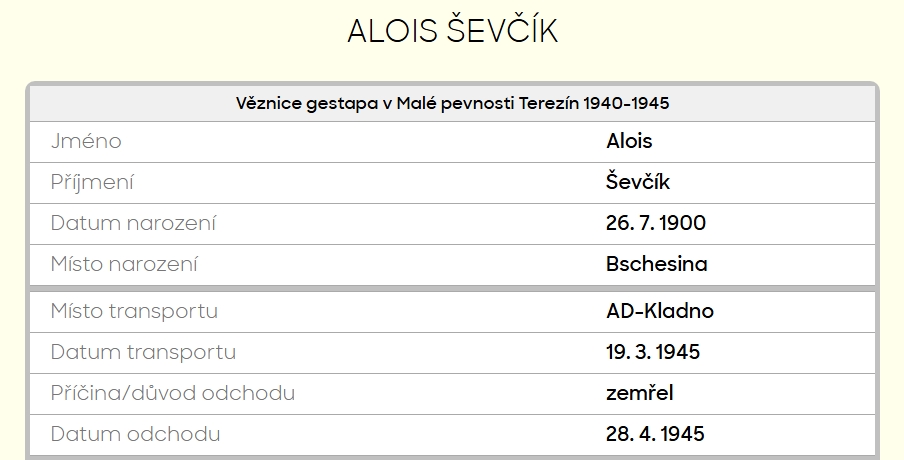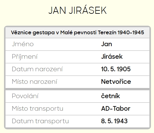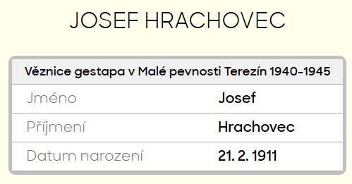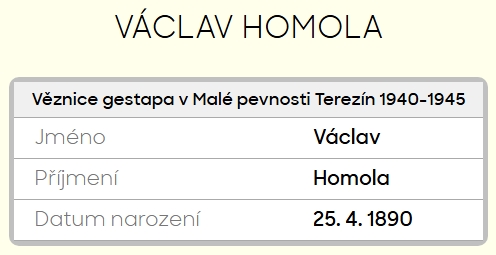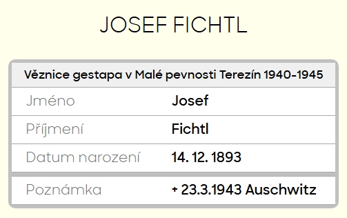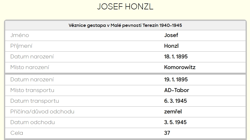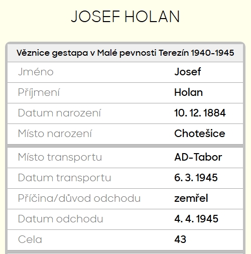 24.6.1910 Panenský Týnec + 18.4.1945 Terezín