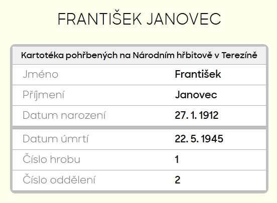 Datum narození 24. 6. 1910 datum úmrtí 3. 4. 1945 číslo hrobu 579 číslo oddělení 1