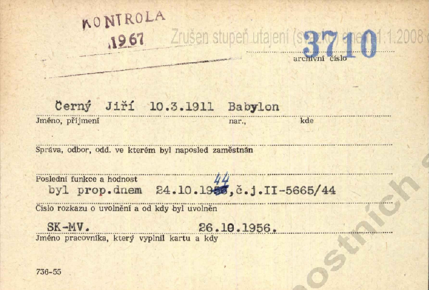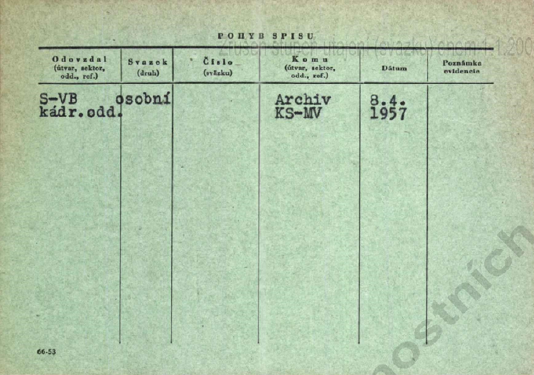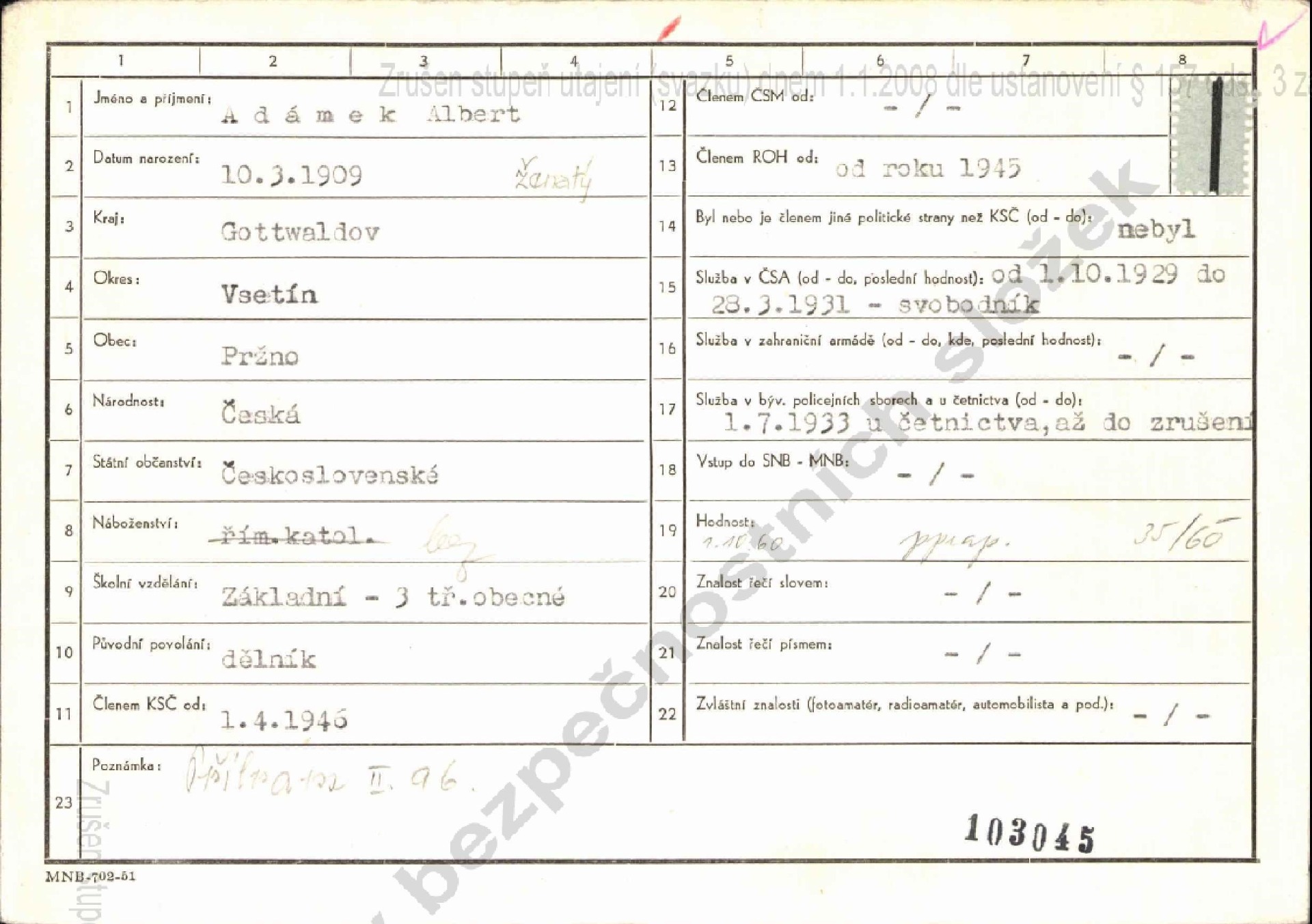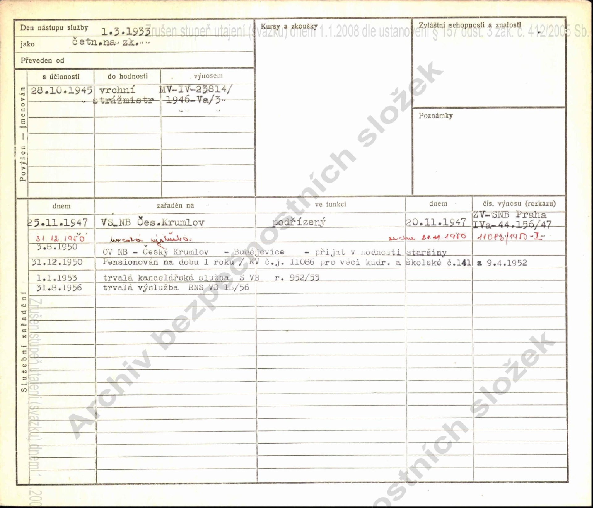 Příslušník četnictva stanice Dolní Bukovsko okres Třeboň v Čechách odvelen do četnictva zvláštního oddílu Terezín v Čechách.