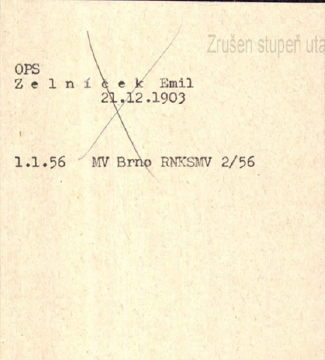 Případ Emila Zelníčka byl nejjednodušší. Soud ho odsoudil na dva roky za pašování zeleniny pro vězeňkyni Terezu Podlahovou, kterou předtím znal. Esesáci také zjistili, že Zelníček měl v příbuzenských vztazích Židy. Z Malé pevnosti byl propuštěn několik týdnů před konec války.