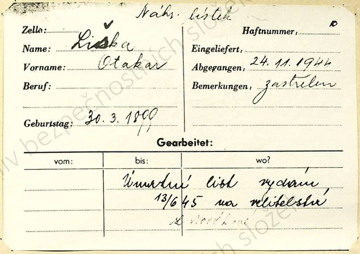 21. 11. 1944 transport do Flossenbürgu č.37335.