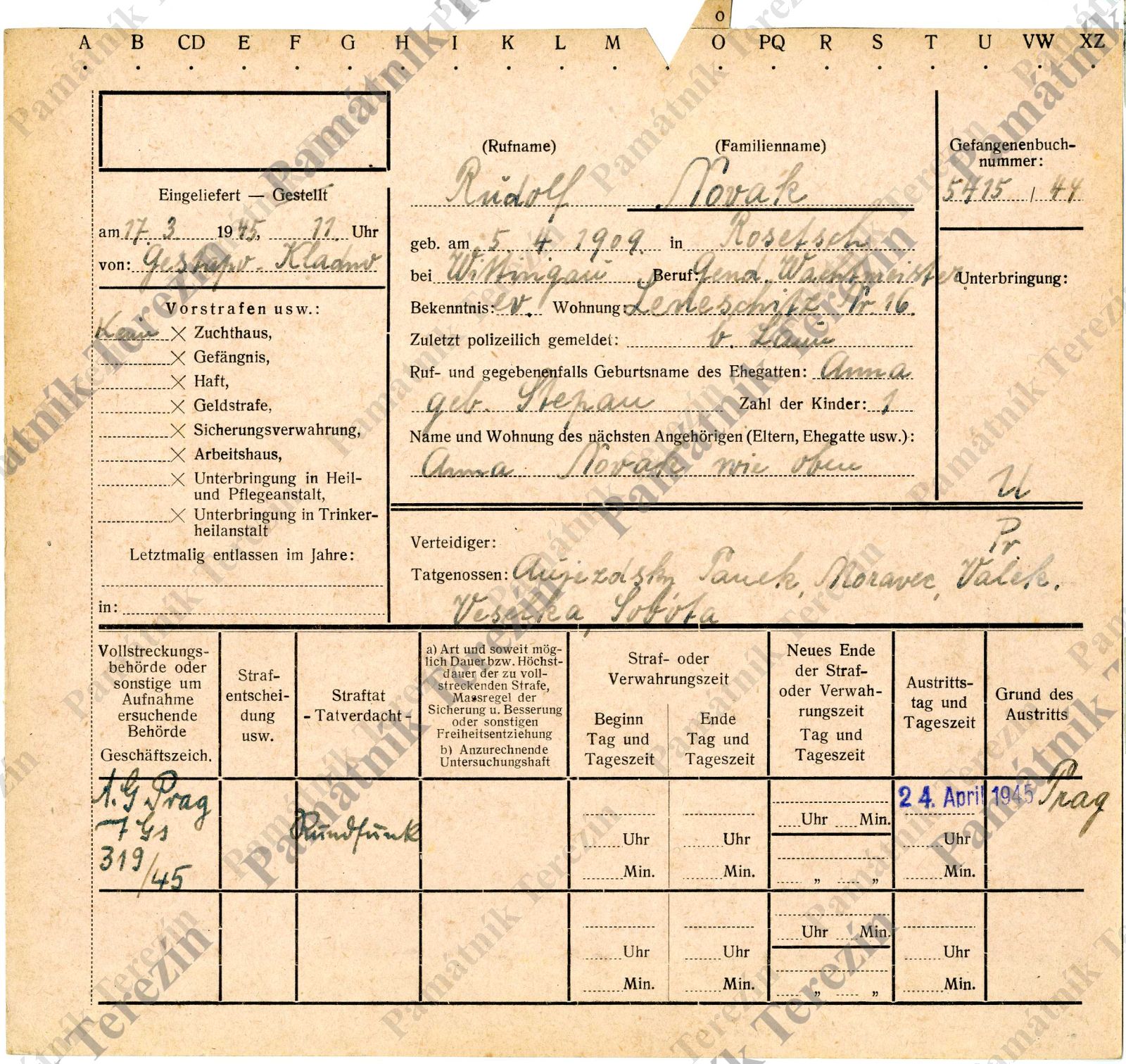 Německá vyšetřovací a vazební věznice Praha-Pankrác v Terezíně 1945