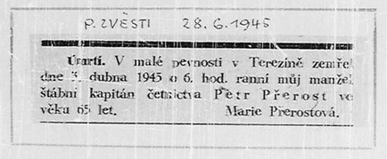Zemřel na následky útrap 5.5.1945 Lysá nad Labem, Nymburk