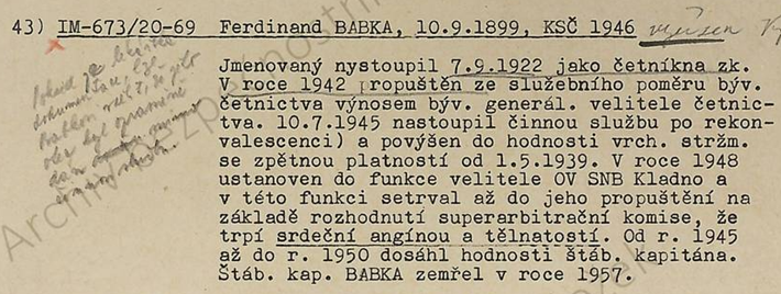Zatčen poboční úřadovnou gestapa Hradec Králové pro spojení s ilegálně žijícími funkcionáři odbojového hnutí ilegalní KSČ.