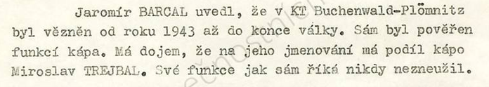 Táborové číslo 52999, kategorie vězňů polit.tscheche, datum transport 21. 7. 1944 předal stapol. Prag transport do KT Buchenwaldu.