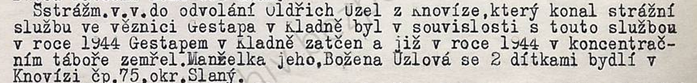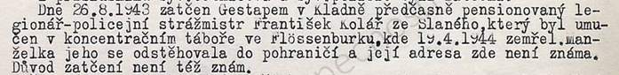 12.9.1944 zatčen gestapem v Kladně – pro nadržování vězňů.