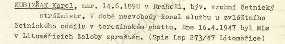 VRANÝ KAREL ČS PETROVICE U RAKOVNÍKA NAR.9.2.1898 JANOVICE OKR KLATOVY, NASTOUPIL SLUŽBU V TEREZÍNĚ 1945