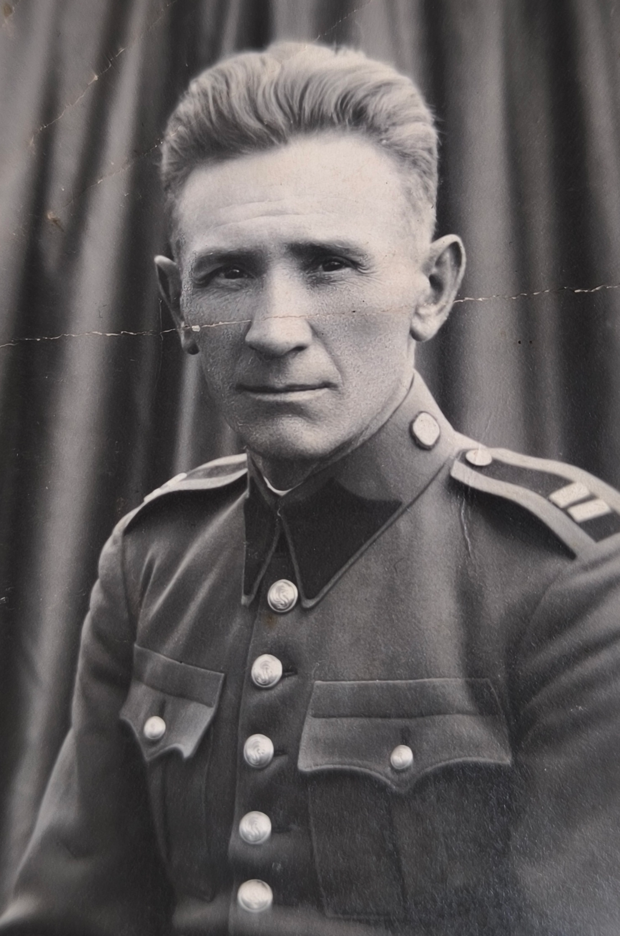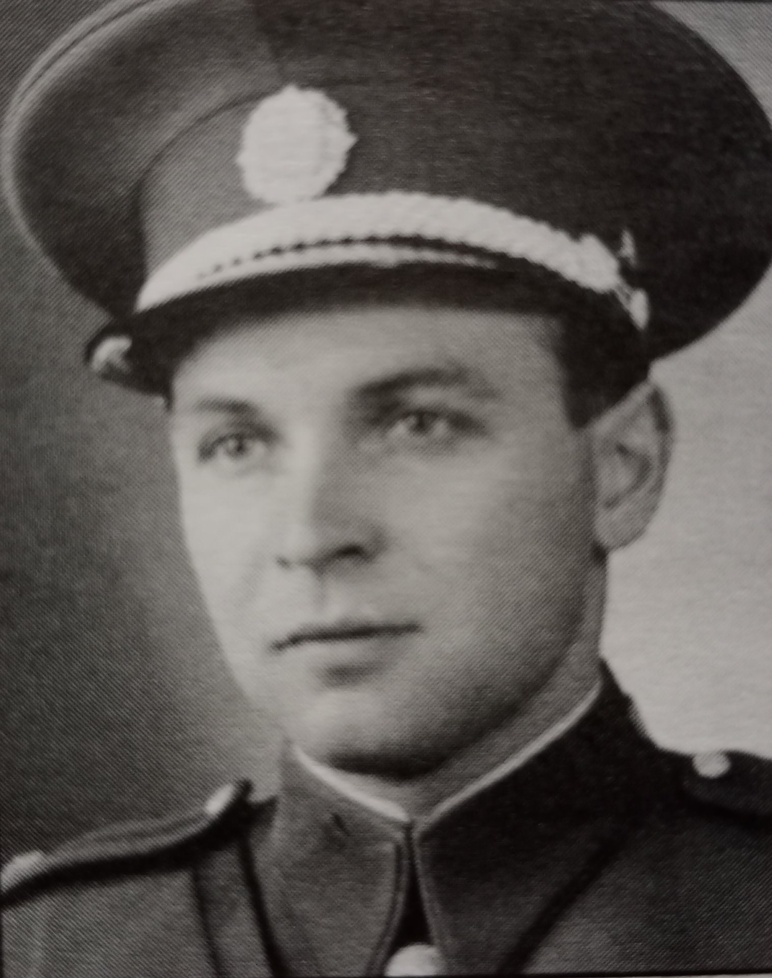 TO NA FOTCE JE JOSEF ZOUNA. VRCHNÍ STRÁŽMISTR, KTERÝ NA SLOVENSKU ABSOLVOVAL HODNOSTNÍ ŠKOLU 1927-28, STÁL V ČELE STANICE SLÁNSKÁ HUTA A PO ROZPADU REPUBLIKY SE VRÁTIL DO ČECH, KDE VELEL STANICI V LIBOTENICÍCH.